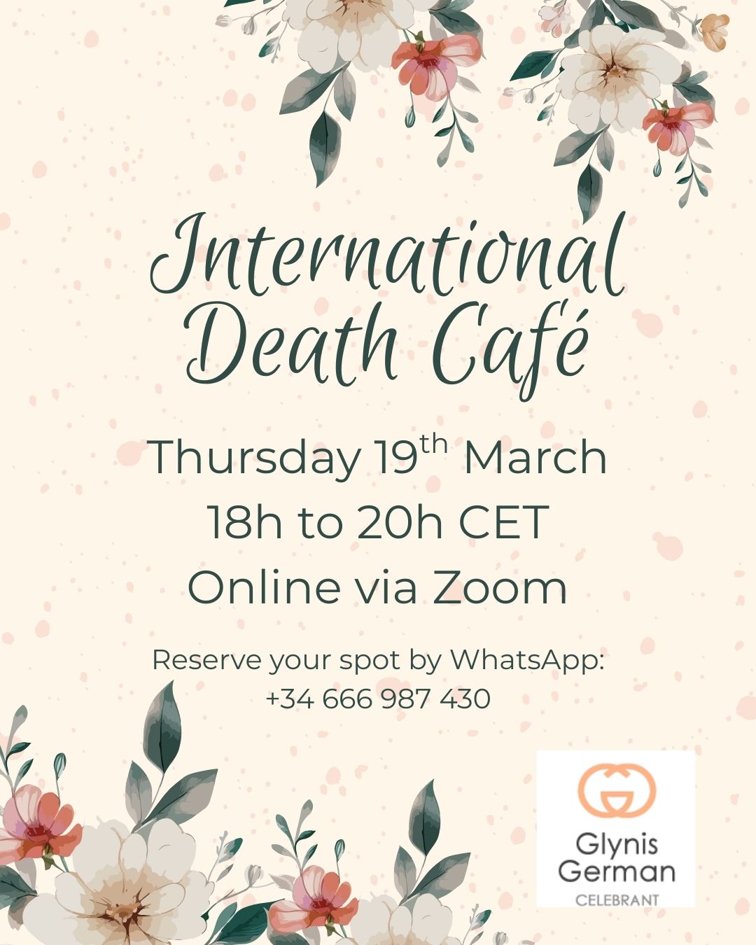 Facilitator: Glynis German is a celebrant and also founder of the Mallorca Death Café (2015). She has various death café groups, in English for the foreign community living in Mallorca and also in Spanish for health care professionals and locals.